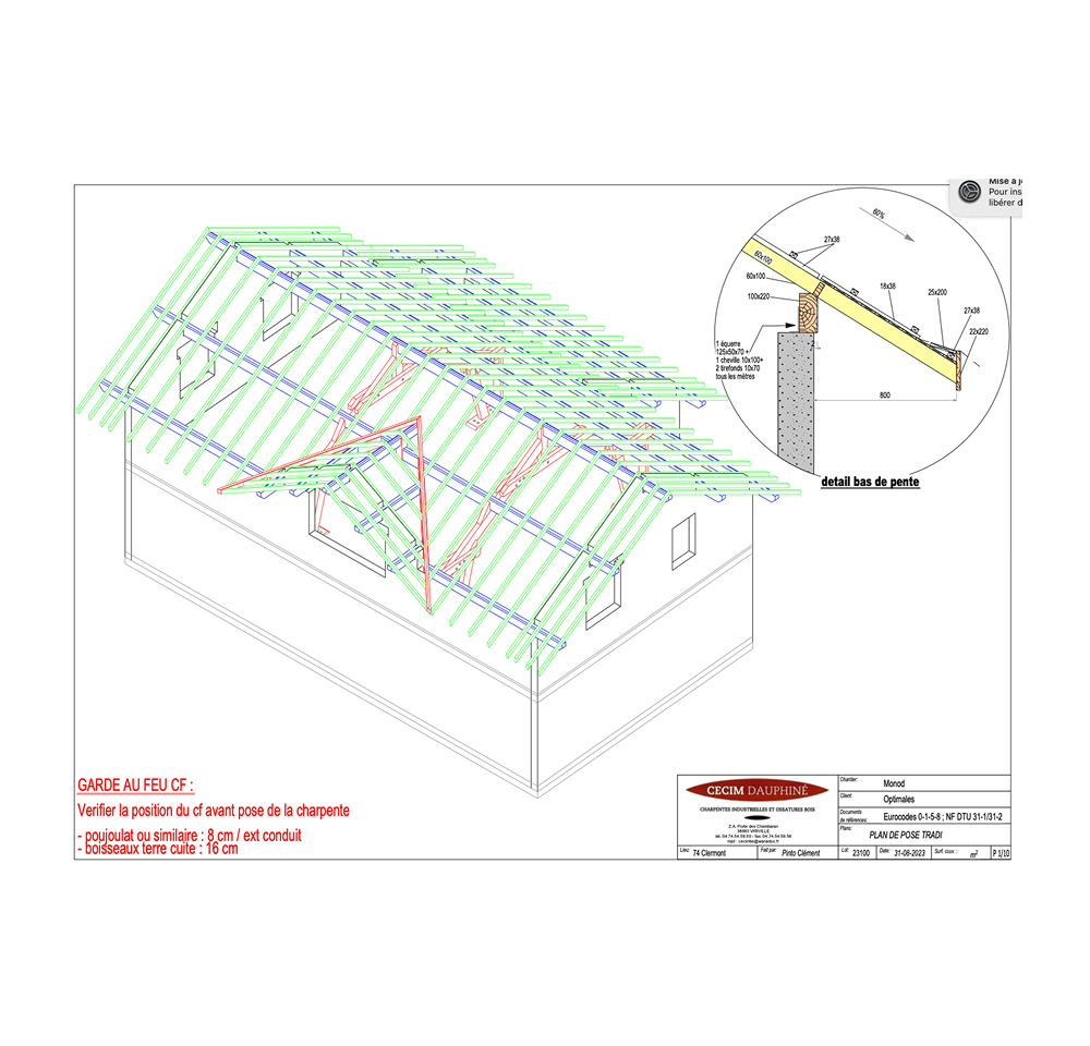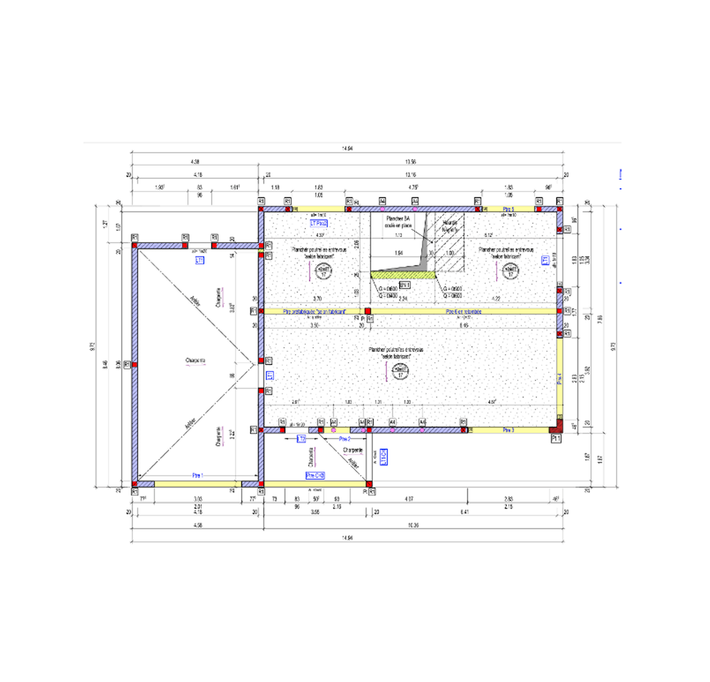 Sur cette base, notre bureau d'études conçoit les plans de structure et de charpente en intégrant toutes les contraintes réglementaires, notamment sismiques, pour garantir solidité, sécurité et pérennité.